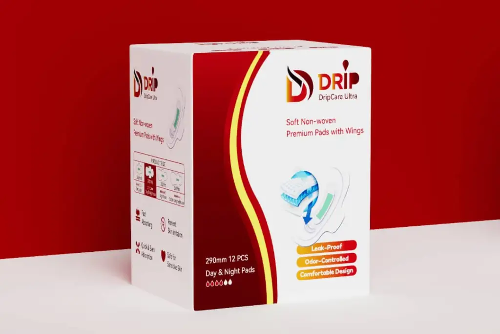 Drip produces high-quality sanitary pads designed for comfort, reliable protection, and local conditions. Current pack example: 290mm — 12 pcs